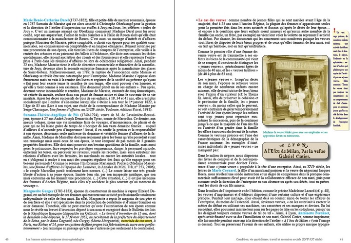Ainsi, malgré des traces ténues dans les documents d’archives (mais si on veut bien les chercher, on finit par les trouver), l’implication des femmes, qu’elles soient célibataires, mariées ou veuves, se vérifie dans tous les lieux d’activité : dans les maisons, dans les fermes, dans les rues, sur les marchés, dans les boutiques, dans les ateliers, dans les manufactures, dans les usines et dans les administrations…